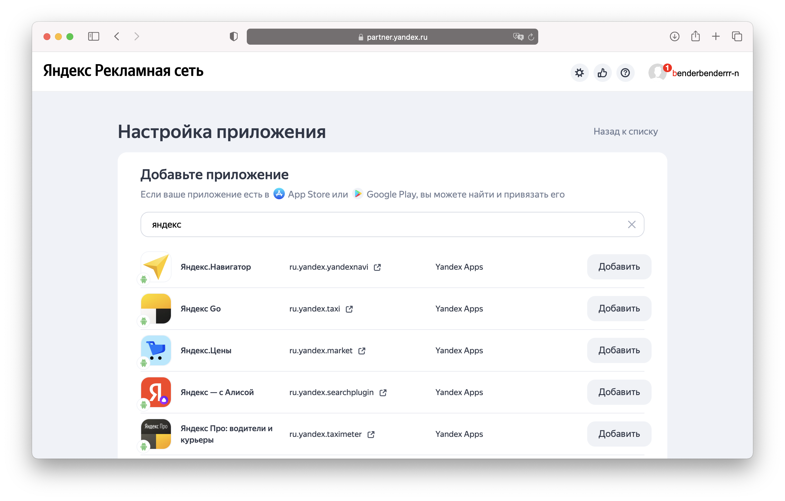 Чтобы добавить приложение в Рекламную сеть, нужно ввести его название или вставить ссылку на App Store или Google Play в поисковую строку внутри интерфейса. При этом все необходимые данные (включая Bundle ID) подтянутся автоматически.